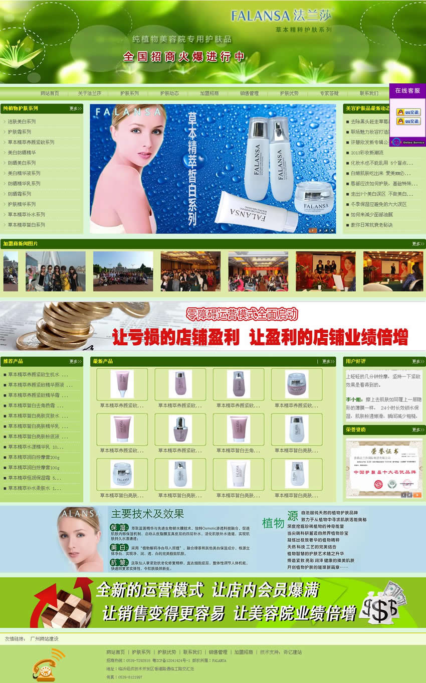法蘭莎深植本土, 經(jīng)過長(zhǎng)期研究,特別針對(duì)東方女性膚質(zhì)特 點(diǎn),開發(fā)出不同系列的產(chǎn)品,能更好的起 到美白、保濕、抗皺等功效。